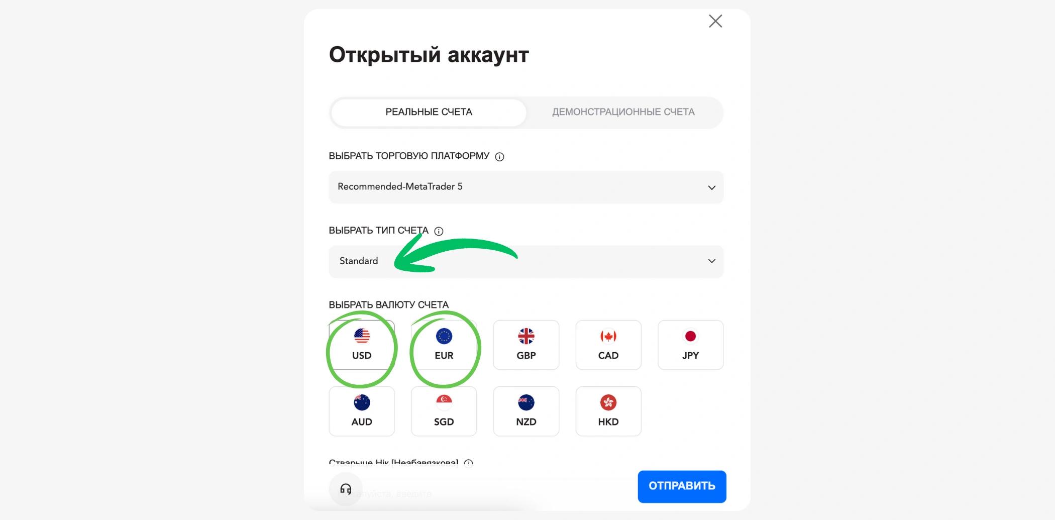 2. Создайте реальный торговый счет - Выберите «Стандартный» здесь